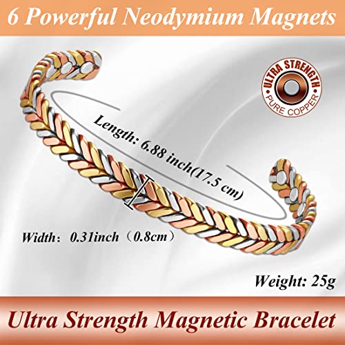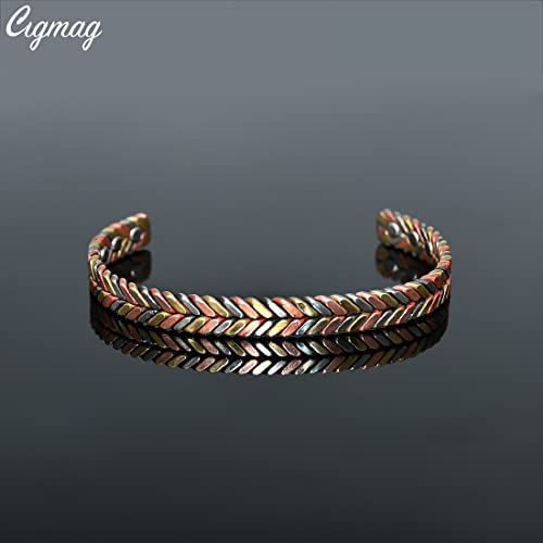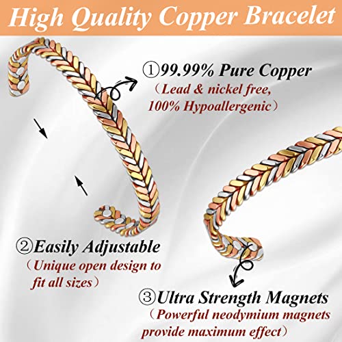Cigmag Copper Magnetic Bracelet for Women 99% Solid Pure Copper Ultra Strength Magnet Adjustable Brazaletes Cuff Bangle with Gift Box (Tricolor Feather)