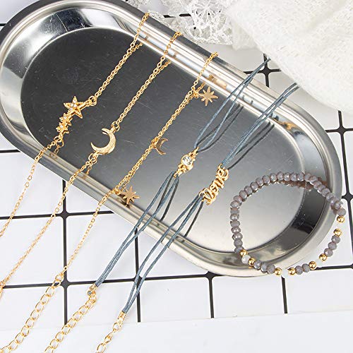 Deniferymakeup Star and Moon Bracelet Personalized Pendant Bracelet Handmade String Grey Bead Bracelet,Set of 6