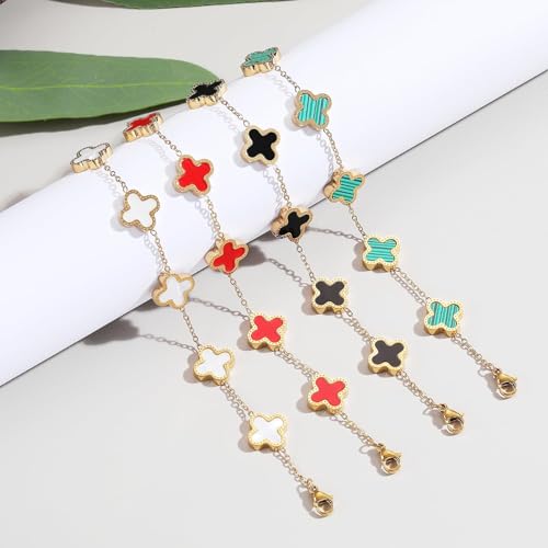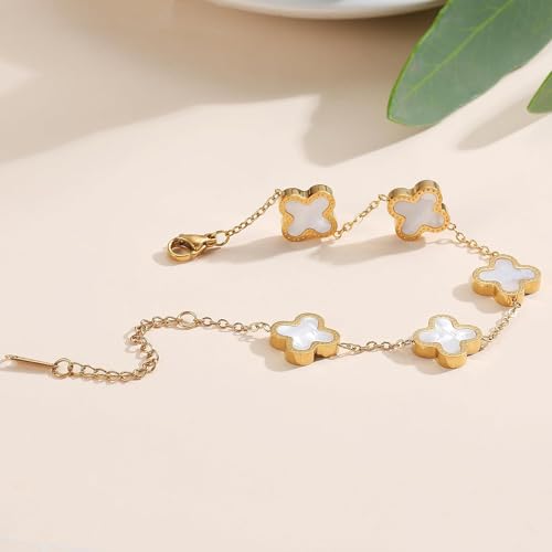 MGOOL Bracelets For Womens 18K Gold Plated Clover Friendship Bracelets Lucky Four Leaf Adjustable Bracelets For Women Gifts For Ladies Teen Girls