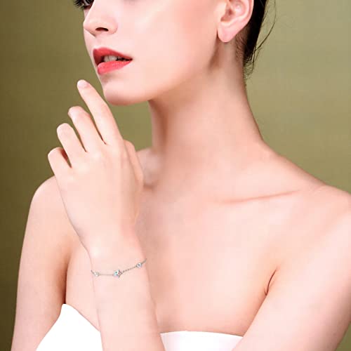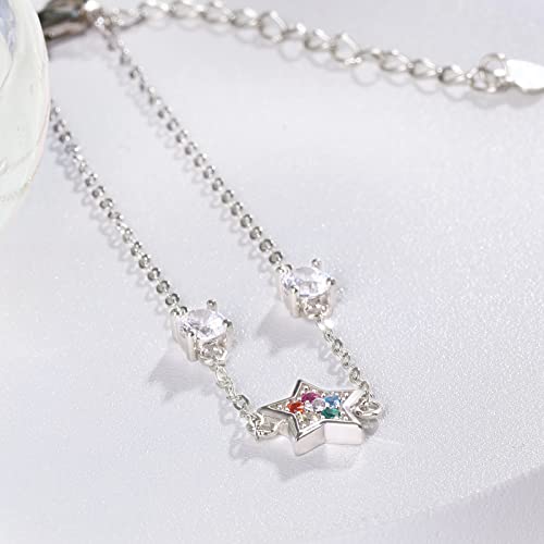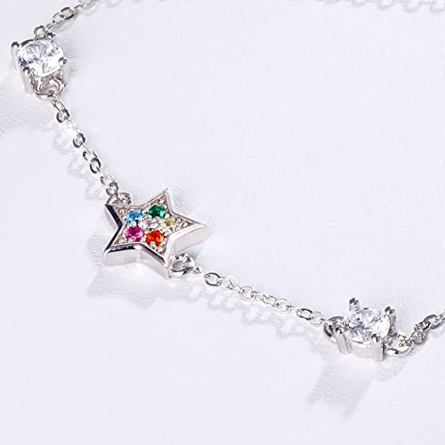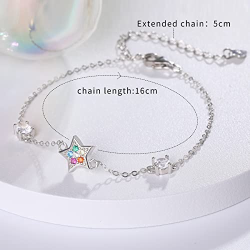 Qings Lucky Star Bracelet for Women, 925 Sterling Silver Colorful Star Bracelet with Cubic Zirconia Birthday Jewellery Gifts for Girls