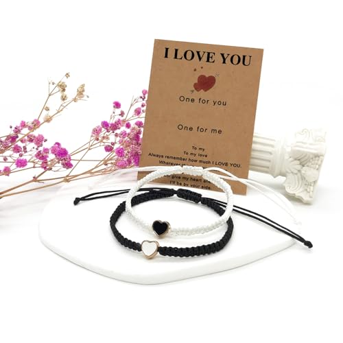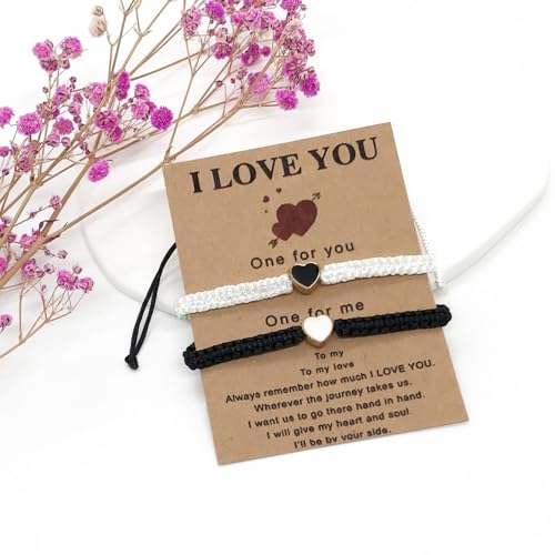 Ymeeaa Matching Bracelets for Couples Love Heart Couple Bracelets for Boyfriend and Girlfriend Relationship Bracelets for Him and Her Long Distance Bracelets – the perfect symbol of love and connection. Crafted with care, these bracelets come in two elegant variations: one with a black and white bead design and the other featuring a red and black string combination. These premium-quality bracelets are designed to keep couples feeling connected, no matter the distance. Ideal for anniversaries, birthdays, or just because, these bracelets are a beautiful way to show your special someone how much they mean to you.