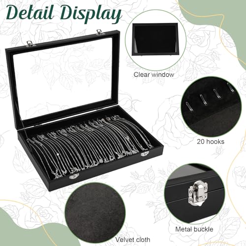 20 Hooks Jewellery Organiser, Velvet Necklace Organiser, Necklace Stand with Clear Lid, Lockable Necklace Display Storage Insert, Dustproof, 13.58″(L) X 9.52″(W)