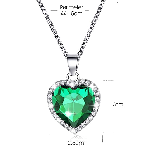 Atentuyi Love Heart Necklace Silver Chain Necklace Birthstone Crystal Necklace Vintage Green Gem Emerald Necklace Dainty Chain Heart Cz Pendant Necklace Jewelry for Women and Girls