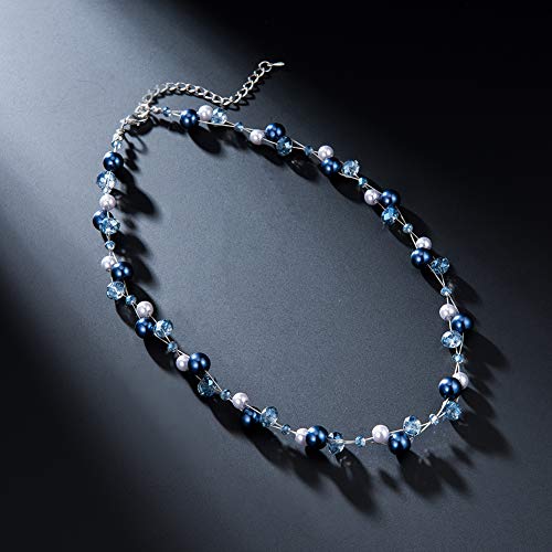 BULINLIN Short Beaded Pearl Necklace for Women, Silver Handmade Statement Necklace with Crystal Beads Fashion Jewellery Birthday Gifts for Her