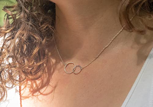 Ginger + Co – Adjustable Sterling Silver Infinity Necklace – 16″ Chain with 2″ Extender – Double Circle Necklace, Interlocking Circle Necklace
