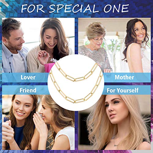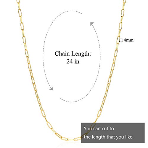 Gold Necklace, 24 inch Gold Chain Necklace, Paperclip Chain Necklace Link Necklace 14k Gold Plated Necklace for Womn Men Girls