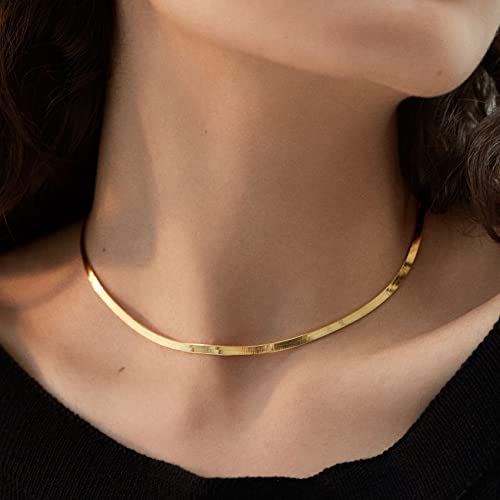 Hipwope 14K Gold/Silver Plated Snake Chain Necklace,Herringbone Necklace For Women Gold Filled Flat Chain Necklace for Women Girl Gifts Jewelry Adjustable Necklace 3/5MM(W) 16″/18″ 20″/22″/24″(L)