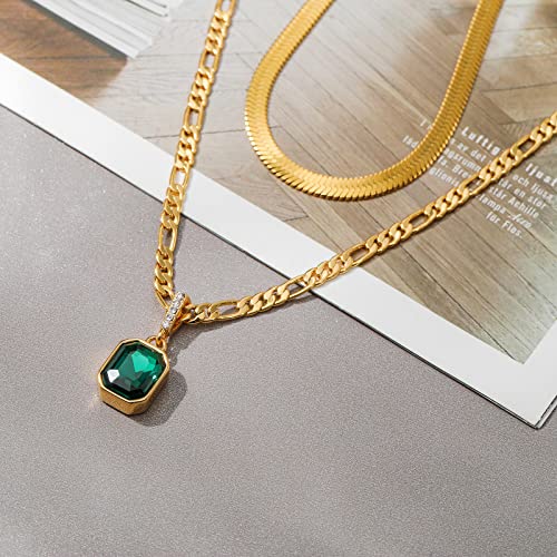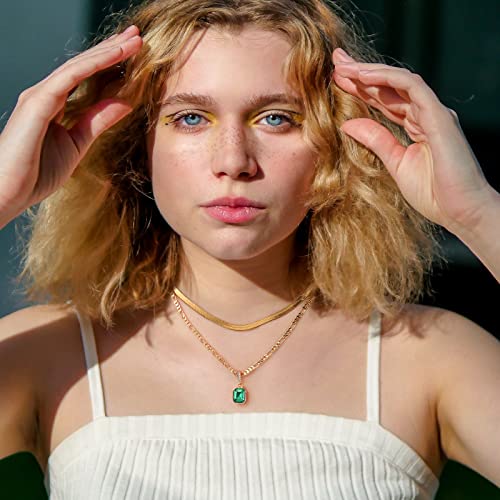 Mesovor 18K Gold Layered Crystal Necklace, 3mm Figaro Chain Necklaces | Dainty 4mm Snake Chain Choker Necklace for Women Girls Jewelry Gifts