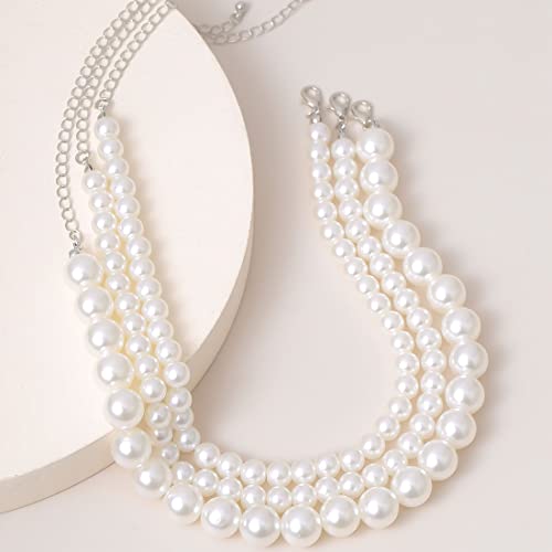 Prosy Layered Pearl Choker Necklace Adjustable Collar Necklaces for Women and Girls