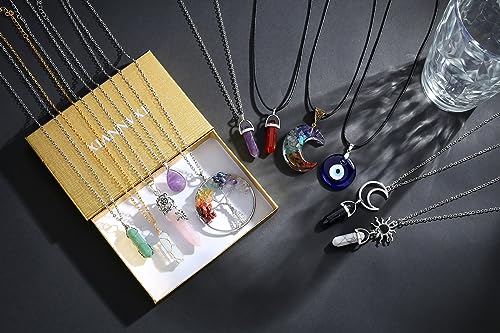 XIANNVXI 11Pcs Healing Crystal Necklaces for Women Gemstone Pendant Necklace for Girls Ladies Necklace Crystal Jewellery for Women Mum Necklaces Gifts
