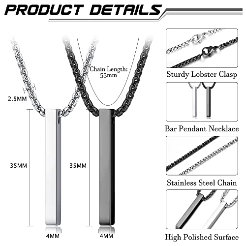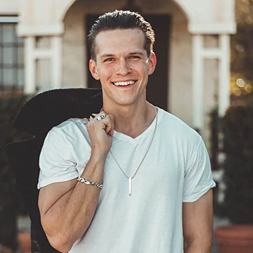 Explore the stylish YAODCA Mens Necklaces with stainless steel silver and black bar pendant, perfect for men, women, and couples. Durable, versatile, and fashionable.
