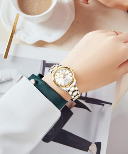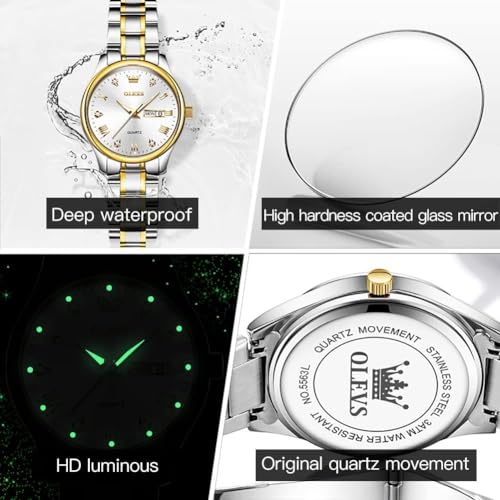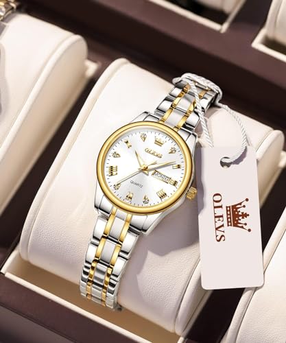 OLEVS Women’s Watch features a stainless steel build and is waterproof. The elegant design showcases a diamond small face with options in gold, black, white, or blue dials. Ideal for fashion-forward ladies.