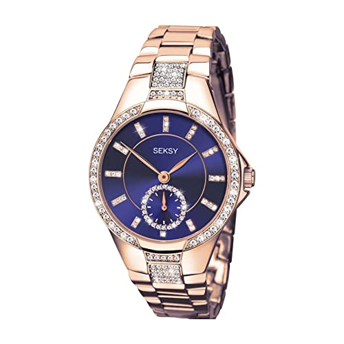 Crafted with precision, the Seksy Women’s Quartz Watch with Blue Dial Analogue Display and Multi-Colour Brass Bracelet 2183.37 is an exquisite accessory that seamlessly blends sophistication and practicality. The stunning blue dial is accented with sparkling crystals, while the multi-colour brass bracelet adds a touch of luxury and versatility, making it suitable for any outfit. Powered by a reliable quartz movement, this watch ensures not only impeccable timekeeping but also longevity. With its sleek design and superior craftsmanship, the Seksy Women’s Quartz Watch is a must-have for any woman who values elegance and functionality in her accessories. Available in variations of a rose gold bracelet and a silver bracelet, you can find the perfect match to complement your unique style.