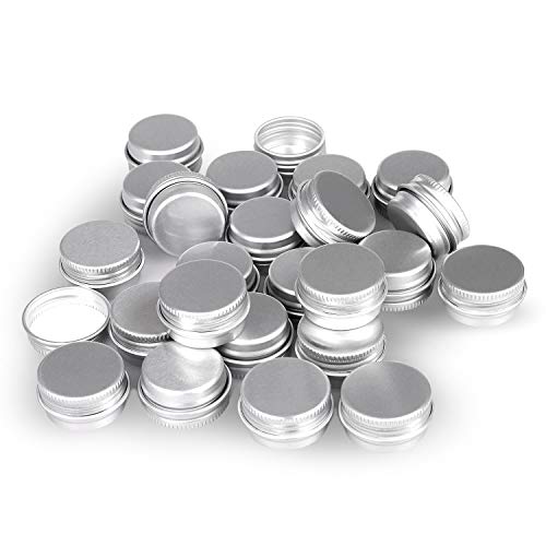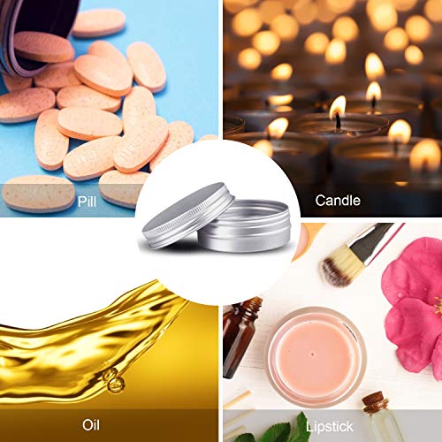 24 pcs Aluminium Empty Containers, Round Travel Cream Jars, Empty Tins with 2 Pieces Round Stickers for Lip Balm, Lotion, Cream, Masks, Mini Candles, Cosmetics (Silver,5ml)