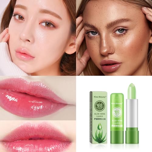 3 PCS Aloe Vera Lip Balm,Hydrating Lip Balm for Dry Lip,Long Lasting Lip Balm Stick,Long Lasting Lip Gloss,Aloe Vera Moisturizing Color Changing Lip Balm Gloss Lipstick Beauty Tool