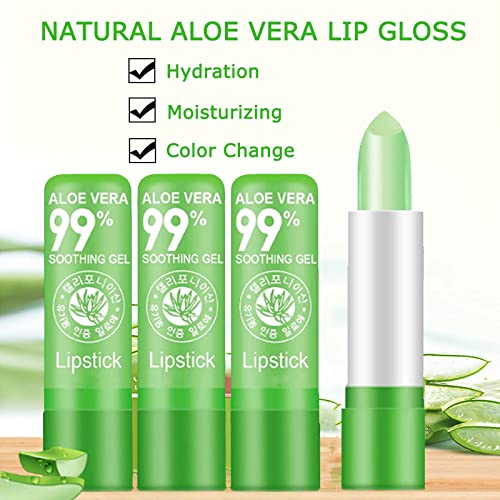 Lip Balm Set,Aloe Vera Lipstick,3PCS Magic Temperature Colour Changing Lip Gloss,Long-Lasting Moisturising Nutritious Cream,Lip Plumper Makeup Set