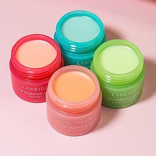 Lip Sleep Mini Lip Balm, Laneige Fruit Lip Balm 4-piece set, moisturizing lip mask, natural bright, provides advanced sunscreen, repair dry lips, for both men and women