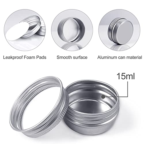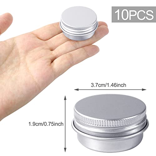 Redamancy 10 Pcs Aluminium Tins Jars, Aluminium Empty Containers, 15 ml Aluminium Tin Jars with Screw Lids, Empty Cosmetics Container Pots, for Lip Balm, Cream, Candles, Cosmetics (Silver)