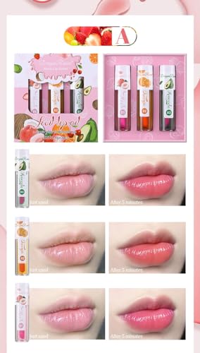 3Packs Lip Oil Set, Lip Gloss Set Colour Changing Moisturizing Lip Oil Lipgloss Care, Fruit Flavoured Lip Oil For Dry Lip Glitter Shine Lip Glaze Gift for Women Teenage Girls (A)