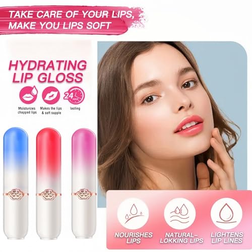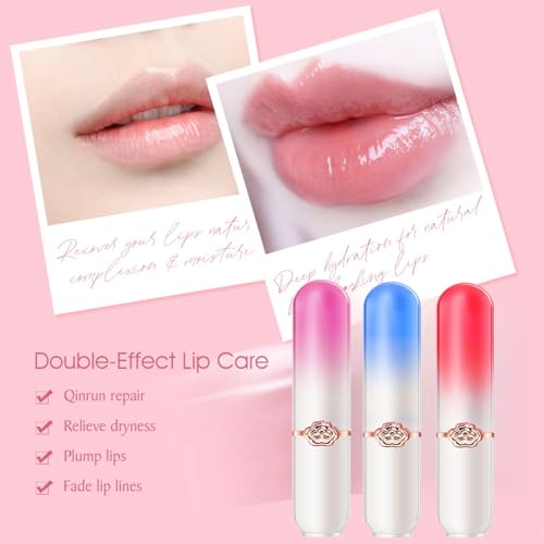 3pcs Lip Balm,Moisturizing Lipstick Set,Clear Colour Temperature Change Lipstick Set,Colour Changing Lip Oil,Glitter Lip Gloss,Natural Lip Protection,Makeup Set for Women and Girls,Lip Care for Women