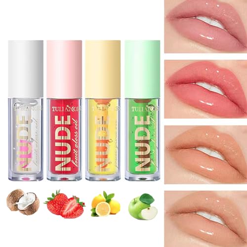 AKOFIC 6 Pcs Hydrating Lip Gloss, Plumping Fruit Flavoured Lip Balm, Shade Transformation Lip Glow Oil, Non-Sticky Lip Care Set for Dry Lips Moisturizing & Nourishing Protection