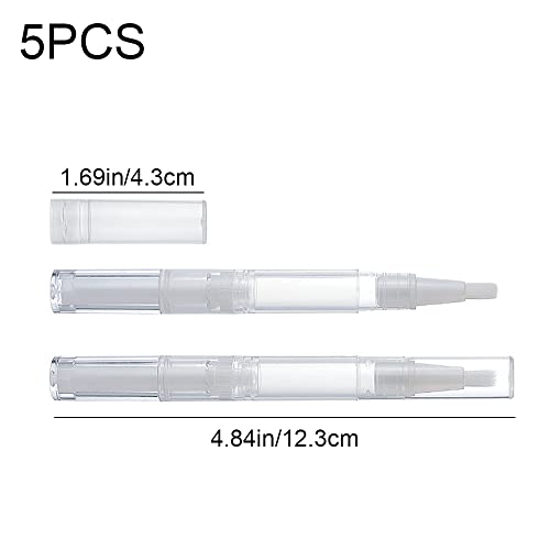 5 Pcs Lip Gloss Tubes Cuticle 3 Ml Oil Pens EmptyTransparent Twist Pens Cosmetic Container Nail Oil Pen with Brush Tips for Women Makeup Accessories