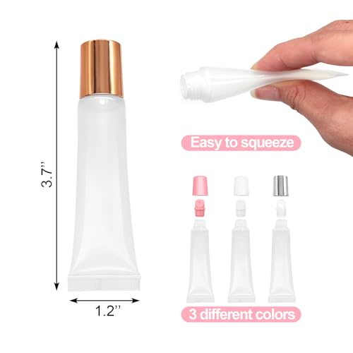 Ainkou 9pcs Empty Lip Gloss Tubes, 15ml Soft Squeezable Lip Balm Container Refillable Lipstick Cosmetic Tubes for DIY Lip Gloss Balm Makeup Travel Toiletries (White Pink Silver)