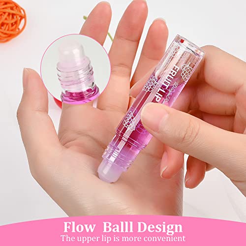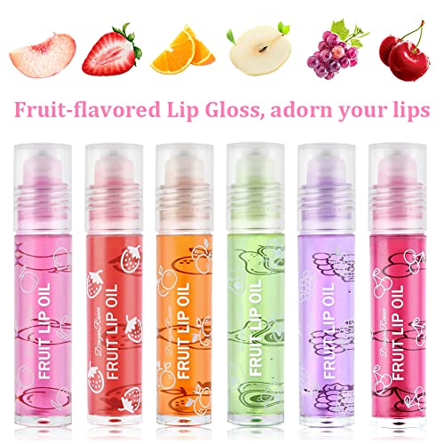 AOOWU 6 Pcs Hydrating Lip Oil Set, Fruit-Flavored Plumping Lip Oil, Long Lasting Lip Glow Balm Lip Care, Transparent Moisturizing No-Sticky Lip Gloss(Peaches,Orange,Avocado,Strawberry,Grape,Cherry)
