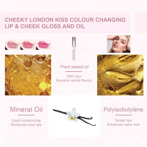 Beauty Forever Cheeky London Kiss Colour Changing Lip and Cheek Gloss & Oil, For Lips and Cheeks, Enriched with Vitamin E, Magic PH Change, 3mls, Pack of (1)