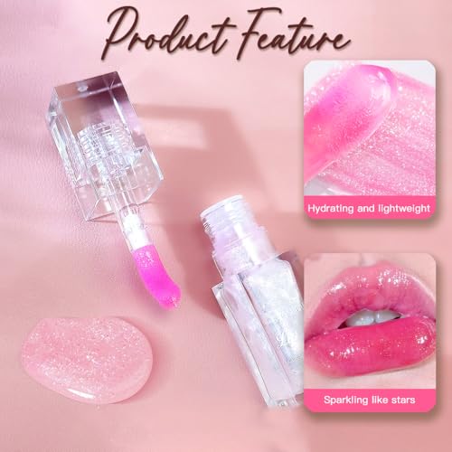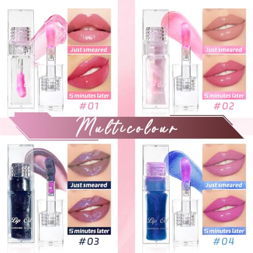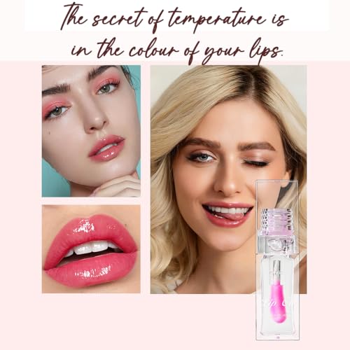 Colour Changing Lip Oil, Magic Colour Changing Lip Oil,Plumping Lip Gloss, Glitter Lip Gloss, Hydrating Glitter Shine Liquid Lipstick Moisturizing Lip Care Lip Gloss for Teenage Girls(2#Pink Pearls)