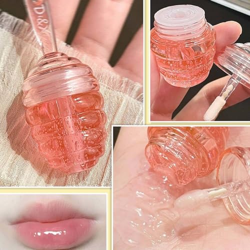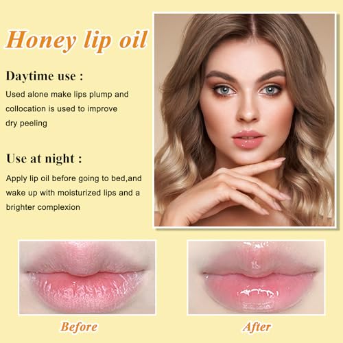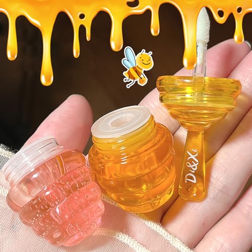 Honey Lip Oil Set,2 PCS Lip Gloss Moisturizing Liquid Lipstick,Glossy Lip Make Up Comfort Clear Lip Oils Cute Lip Balm Set Honey Flavors for Women and Girls
