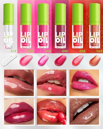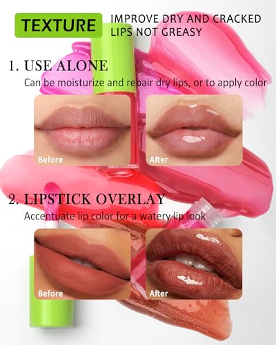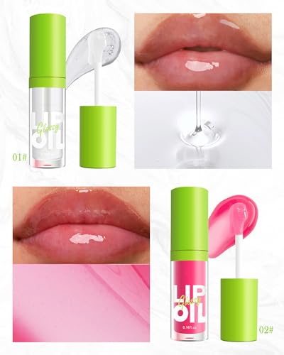 Hydrating Lip Glow Oil-2 Colors Tinted Plumping Moisturizing Lip Oil Gloss,Fat Lip Oil Drip Liquid Lipstick,Clear Pink Shiny Lip Care Oil, Long Lasting Non-sticky Transparent Lipgloss, Makeup Gift-1+2