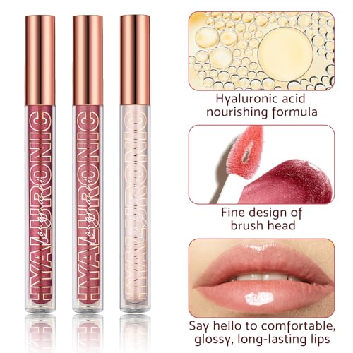 Leogony 3PCS Lip Gloss Set, Hyaluronic Acid Lip Glosses, Hydrate & High Shine Plump Lip Gliss