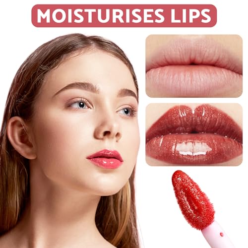 Nude Lip Gloss, Natural Lipgloss Lipsticks for Women Long Lasting, Moisturizing Lipstick Lip Tint Lip Plumper, Hydrating Lip Stain Plumping Clear Lip Gloss
