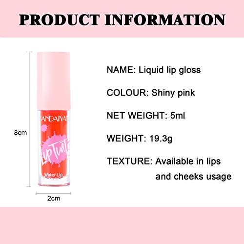 Lip Gloss Lip Plumper,Pink Liquid Lipstick Lip Stain Lip Oil Lip Plumper Gloss,Natural Shiny Long Lasting Non-stick Cup Waterproof SweatProof Moisturizing Tinted Lip Balm Makeup