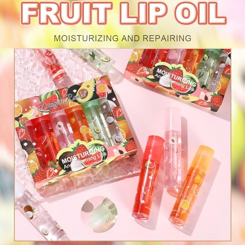 Prreal 6 PCS Fruit-Flavored Lip Gloss, Moisturized Fresh Lip Glaze,Transparent Colorless Moisturizing Lip Lotion Lip Plumper, Roll on Lip Gloss Balm, Liquid Lipstick Lip Oil for Lip Care