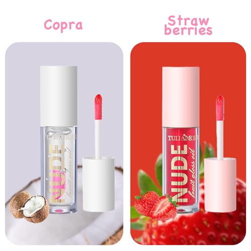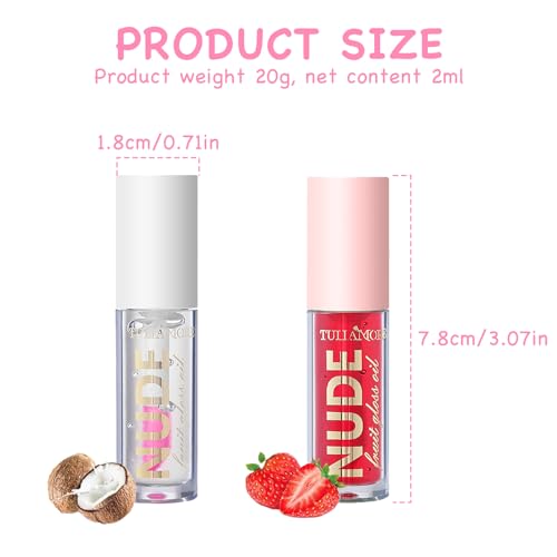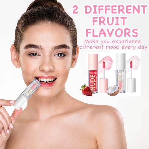 Ninnyi 2Pcs Long Moisturizing Lip Glow Oils, Fruit Flavoured Plumping Lip Gloss