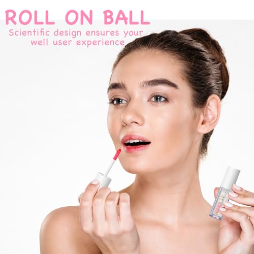 Prreal 6 PCS Fruit-Flavored Lip Gloss, Moisturized Fresh Lip Glaze,Transparent Colorless Moisturizing Lip Lotion Lip Plumper, Roll on Lip Gloss Balm, Liquid Lipstick Lip Oil for Lip Care