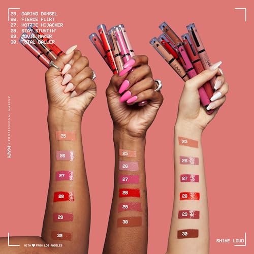 Experience the ultimate in lip colour with NYX Professional Makeup Lip Gloss, High Pigment, Long Lasting Lip Shine, No Transfer, Shine Loud, 29 Movie Maker. Achieve vibrant, high pigment colour in just one swipe with options like 01 Rebel In Red for a daring look or 03 Ambition Statement for elegant allure. Both variations boast a long-lasting, no transfer formula that keeps your lips looking glossy and pristine for hours. The lip gloss’s unique blend provides a rich, comfortable wear without feeling sticky or heavy, making it perfect for any occasion. With NYX’s Shine Loud collection, enjoy a radiant, long-lasting lip shine that stands out and stays put.