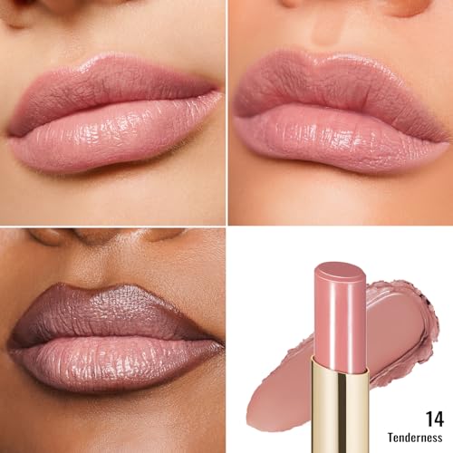 Oulac Nude Pink Lipstick – Moisture Shine Hydrating Lipstick & Tinted Lip Balm for Dry Lips, Medium Coverage Lip Colour | Juicy Look, Glossy Finish, Vegan, Cruelty-Free, Tenderness (14)