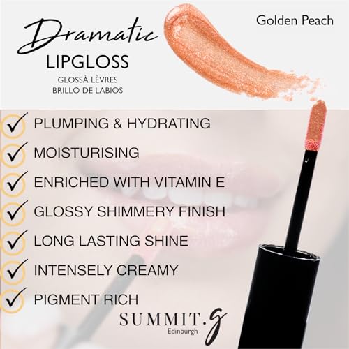 Summit.g Golden Peach Plumping Lip Gloss with Vitamin E for Moisturizing Lips| Lip Plumper with Strong pigment for long-lasting Shimmery Finish| Lifter Gloss with Hyaluronic Acid for Adults & Kids