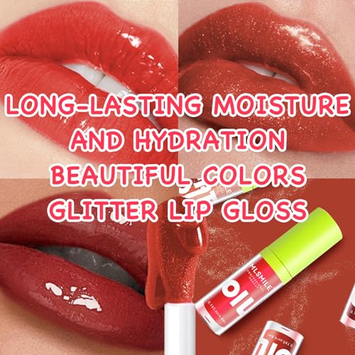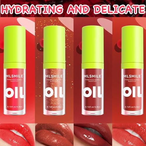 Xumann 4PCS Lip Oil Gloss Set, Tinted Lipgloss, Clear Lip Oil, Lip Plumping Moisturizing Long Lasting Non-Sticky for Girls Women Gift
