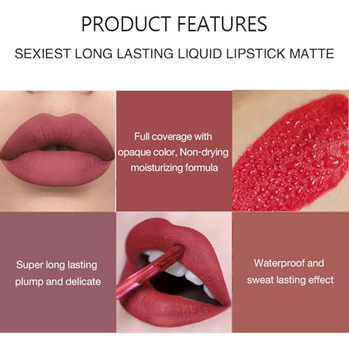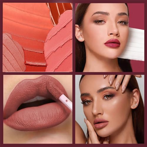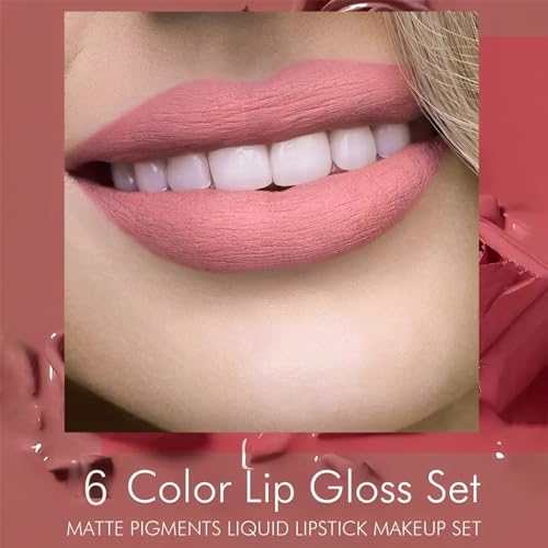 6 Pcs Matte Lip Gloss Set Nude Liquid Lipstick Velvet Matte Non-Stick Cup Not Fade Waterproof High Pigmented Smooth Long Lasting Red Lip Sticks Pink Lipgloss Set Gift For Makeup Women