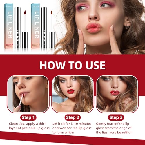 Ganbaro Lip Liner, Removable Lip Liner Pencil, Detachable Lip Liner, Peel off Lip Liner, Lip Liner Stain, Long Lasting Lip Stain Peel Off, Peel off Lip Stain, for All Skin Types (Dark Brown+burgundy)
