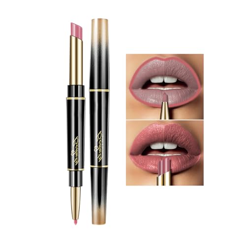 Double Colors Nude Lip Liner and Lipstick 2 In 1 Set, Non-Sticky Long Lasting Waterproof Lip Stain,Lip Gloss Make Up Gift Set (#2)