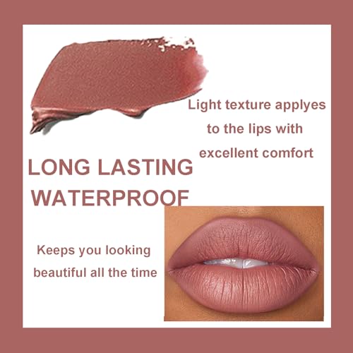 Enhance your lips with the Lipstick Lip Liner Set. This highly pigmented, waterproof set includes a matte lip gloss and a nude lipstick, offering a non-stick cup lip stain and velvet pink lip tint. Ideal for long-lasting wear and a flawless finish.