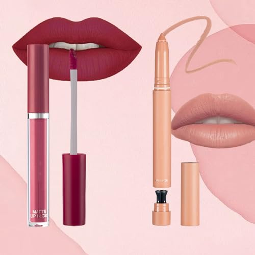Lipsticks for women long lasting,Red Lipstick Sets Matte Lipstick Lip stick,lip Liner and Lipstick Set Waterproof High Pigmented Velvet Lipgloss, Nude & Berry