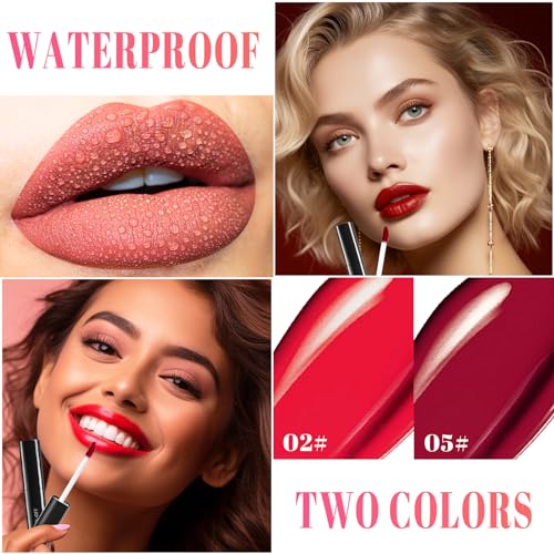 Prreal 2 Colors Peel Off Lip Liner Stain Set, Tattoo Color Lip Tint Stain, Long Lasting and Waterproof Lip Stain Peel off Lip Makeup,Peel Off Lip Liner with Natural Matte Finishï¼02+05
