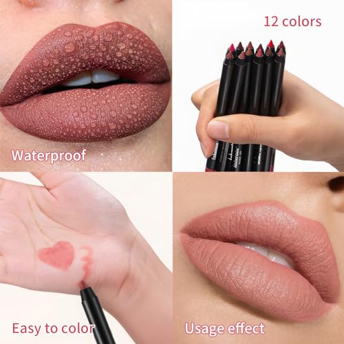 Qwesure Xixi Matte Durable Lip Liner Pencil – Waterproof Non-Adhesive Hooked Lip Pencil Reduces Wrinkles Non-Adhesive Lipstick Pen