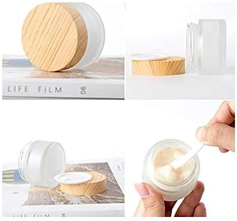 VASANA 3PCS Empty Refillable Glass Cosmetic Jars are perfect for storing face creams, lip balms, scrubs, oils, salves, lotions, and make-up. Each jar comes with a liner and elegant wood grain lid, ensuring your beauty products stay fresh and secure.